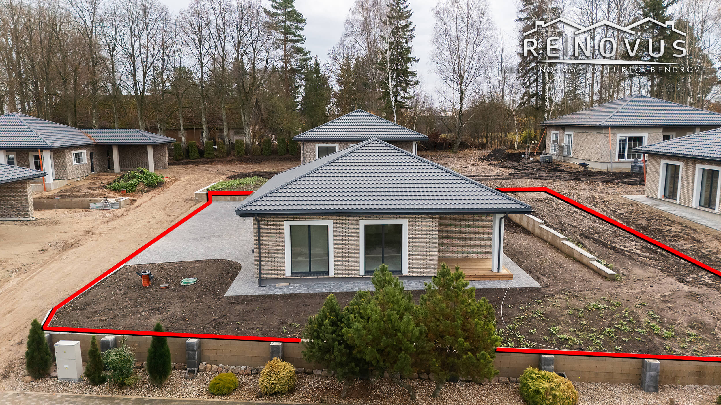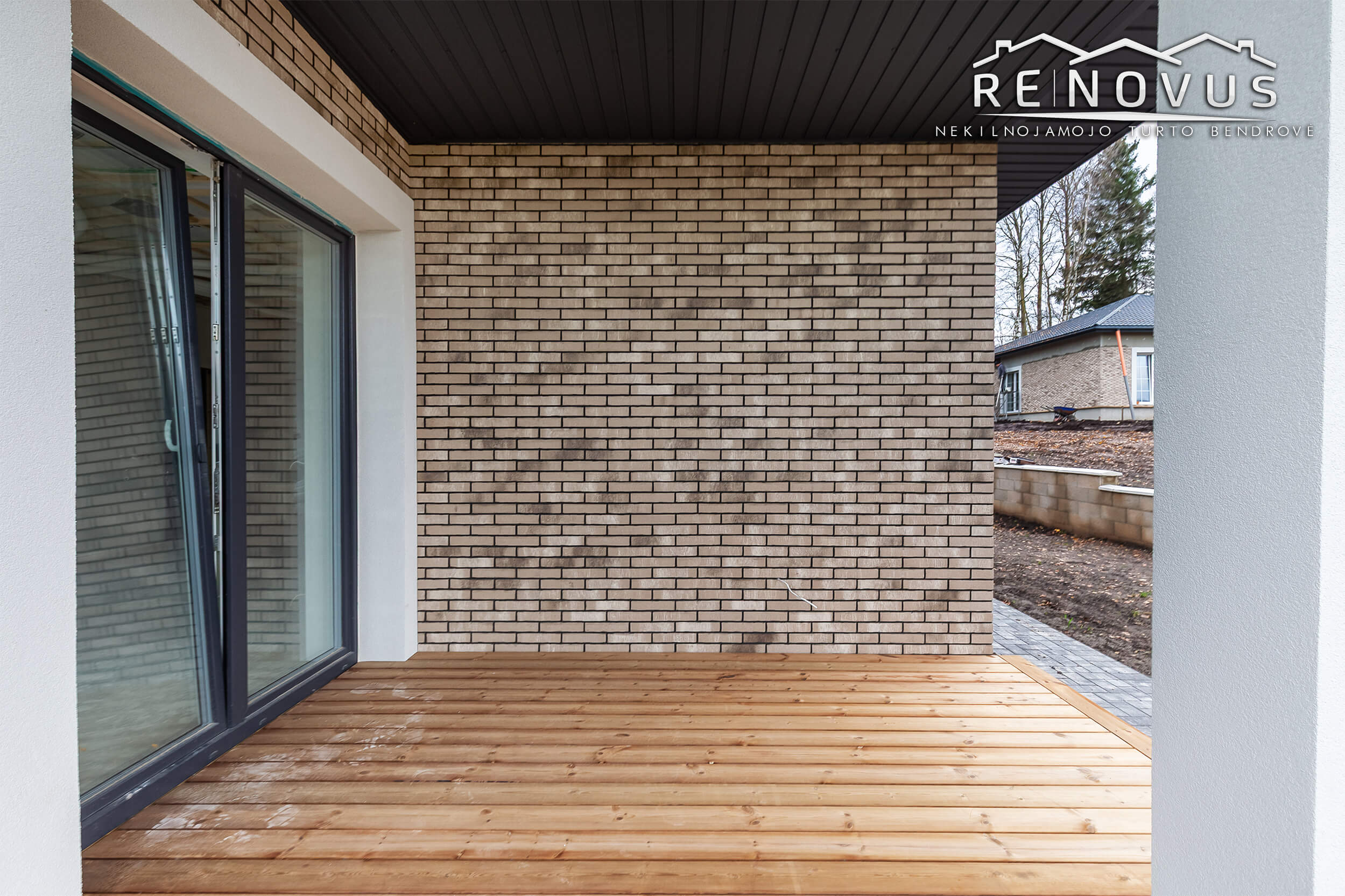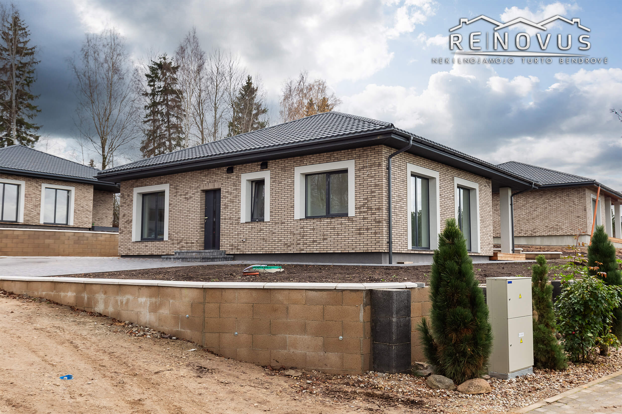 Namas 85 % baigtumo. Pilna išorės apdaila, įrengta terasa ir sutvarkytas, apželdintas gerbūvis.