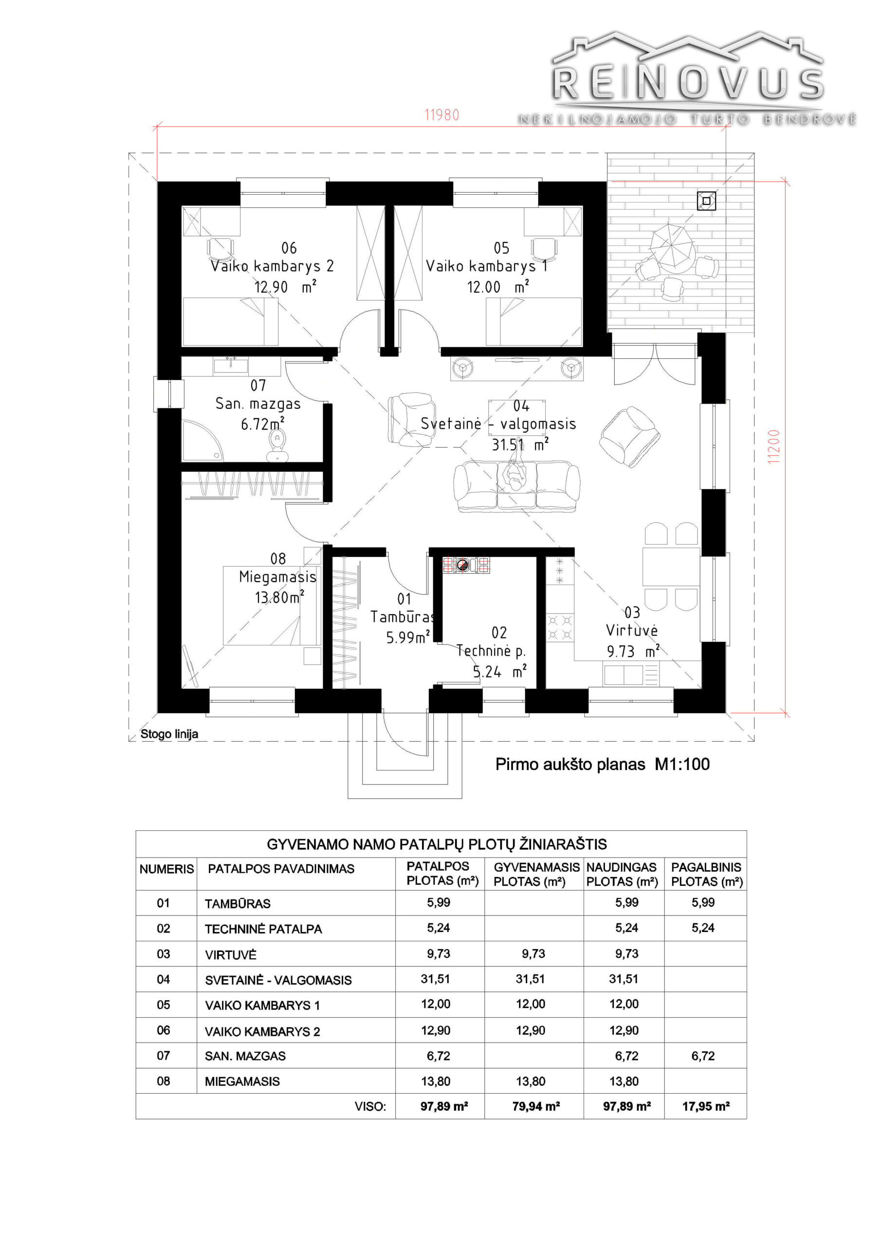 – Namo plotas – 97.89 kv.m. + terasa;