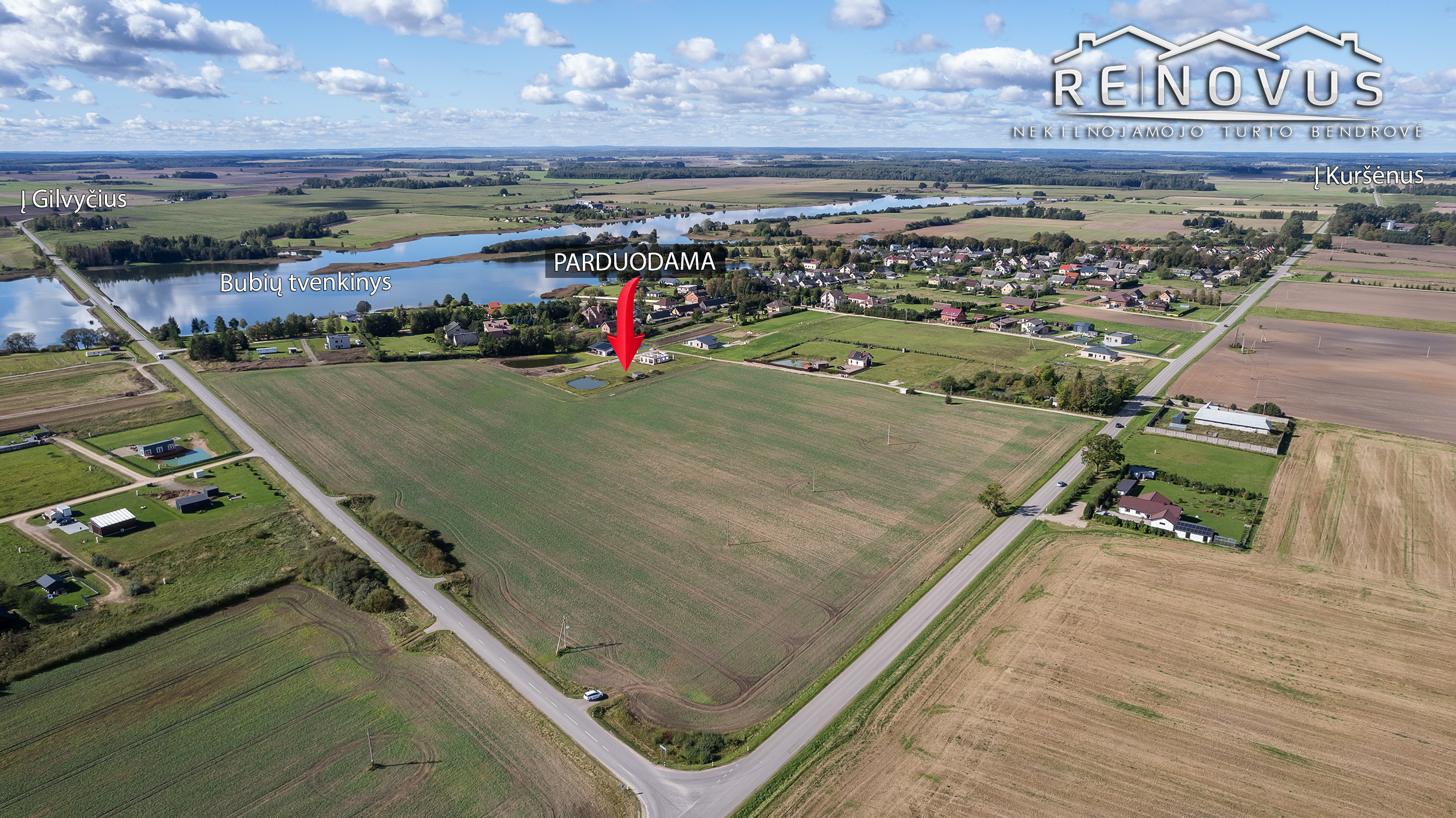 Erdvus bendras sklypas, kuriame jau iškastas tvenkinys.