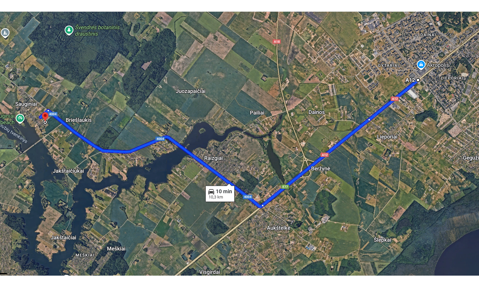 Privažiavimas prie sklypo iš miesto pusės pro Aukštelkę, Raizgius, Jakštaičiukus, Briešlaukį.