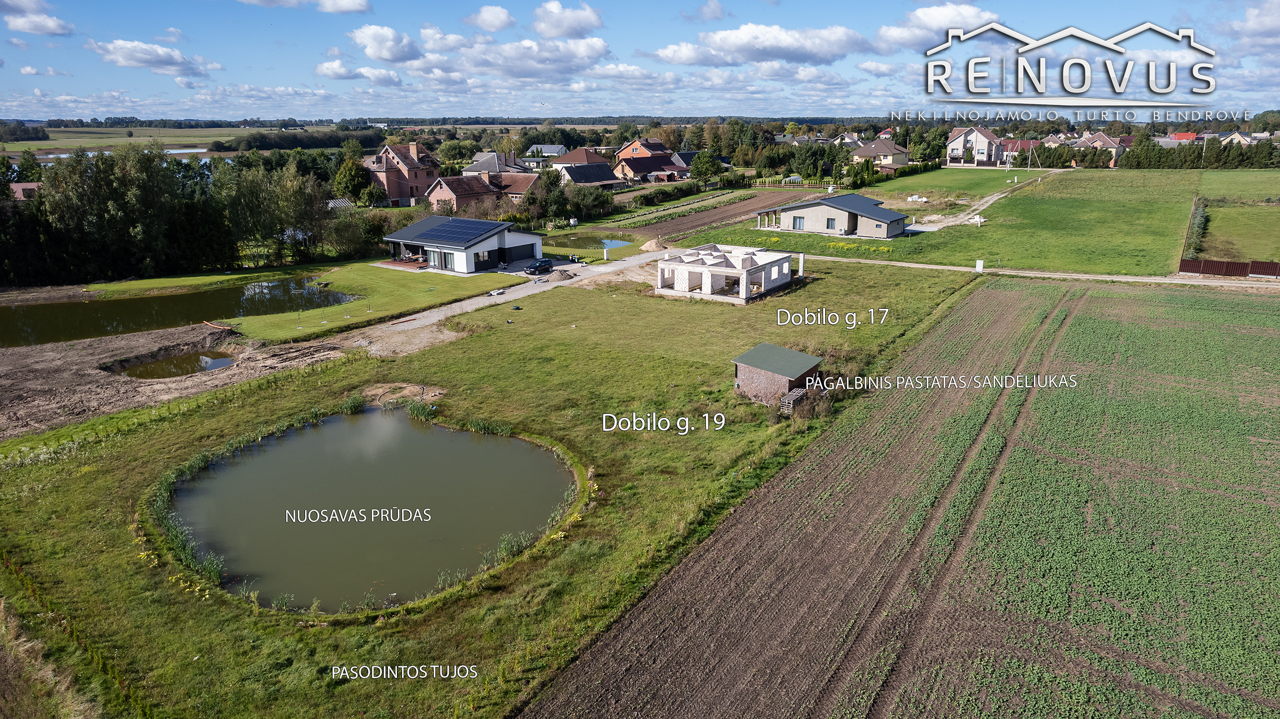 PARDUODAMI 2 namų valdos sklypai su pradėtu statyti A++ klasės gyvenamuoju namu, netoli Bubių tvenkinio Sauginiuose, Šiaulių raj.