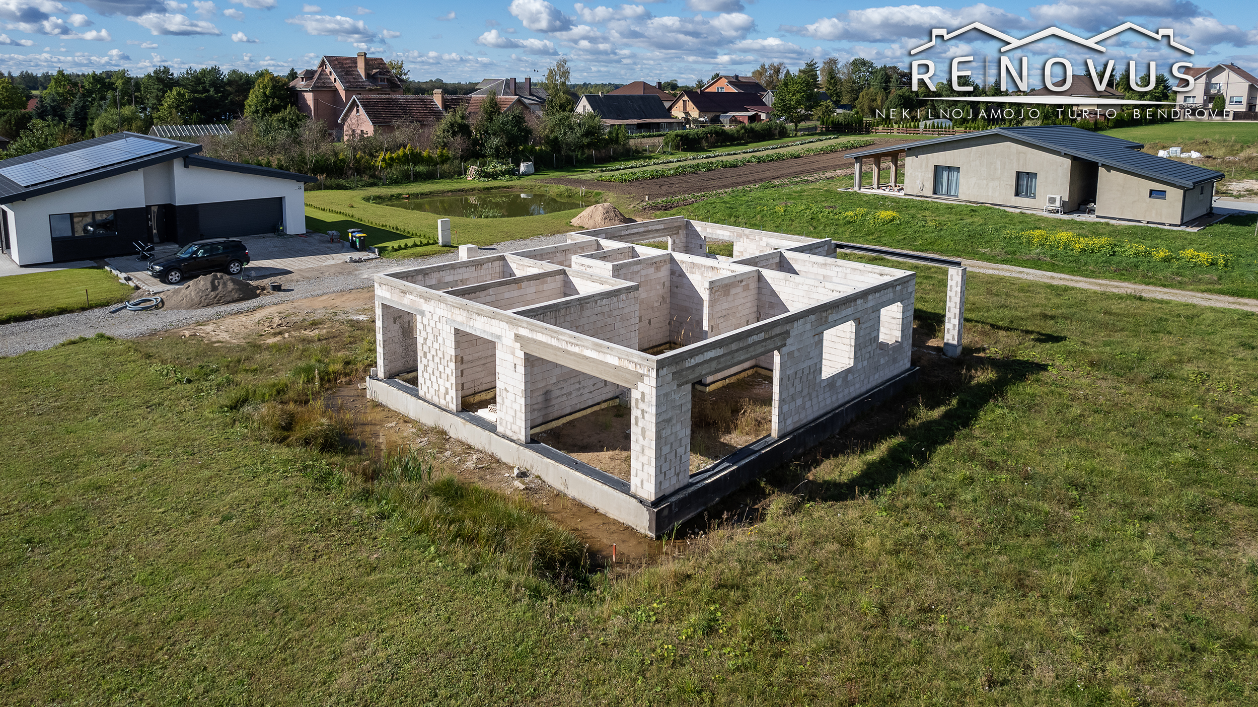 Namas silikatinių blokelių, apšiltinti pamatai. Šiuo metu pastatytas I aukštas iki perdengimo.