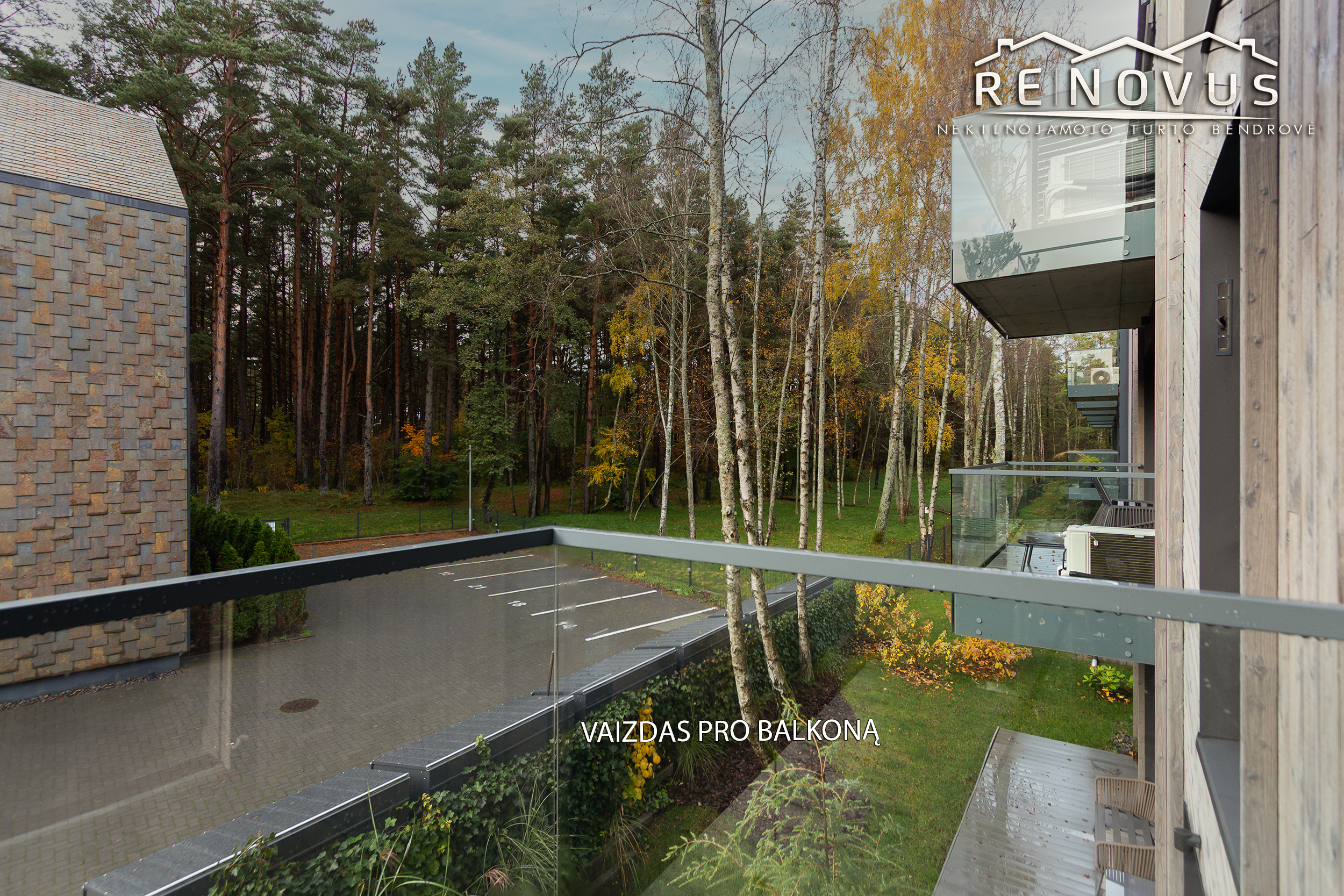 – Stiklo konstrukcijos balkonas su vaizdu į mišką;